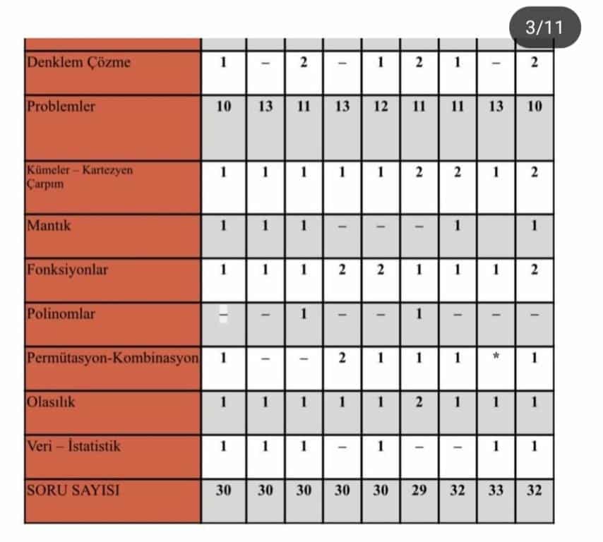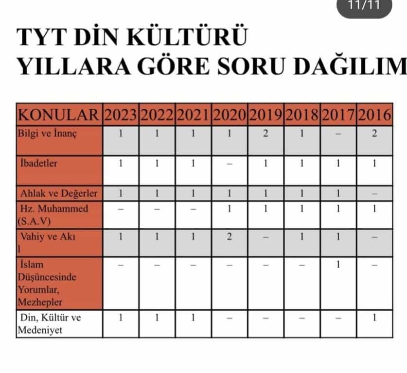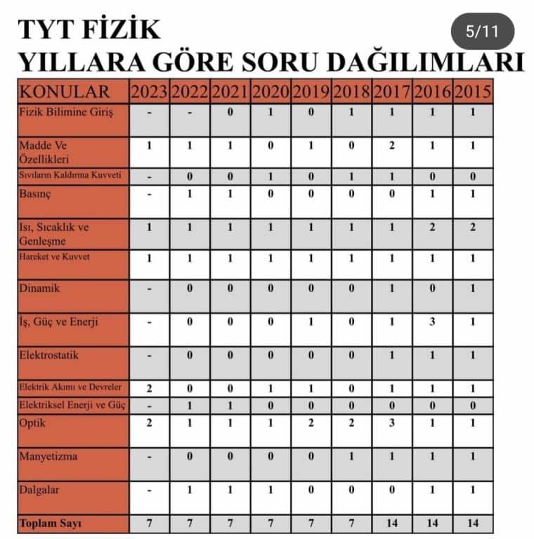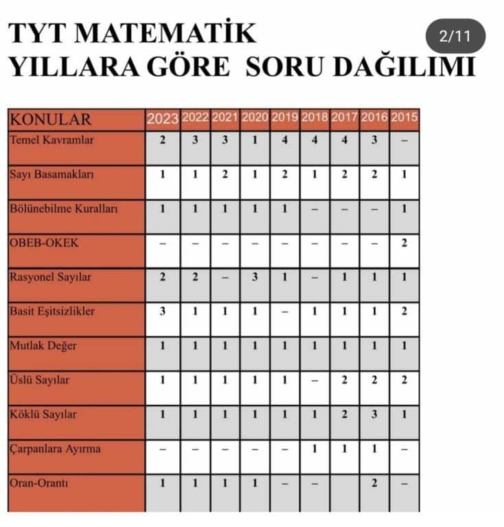 TYT Konu ve Soru Dağılımları